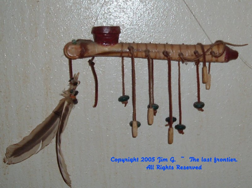 This happened back in what is called the BUTTE in Palmer, Alaska. The various beads signify the medicine journey the owner of the pipe has undertaken before sharing the sacred smoking ceremony with others. This particular item is NOT for sale for obvious reasons, but servers as an example of the custom work that we do here in Alaska.