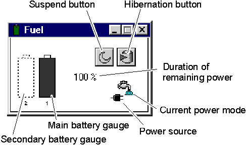 By using the Fuel-Gauge program, you can display the battery status and power mode (High Performance, Automatic, or Customized).